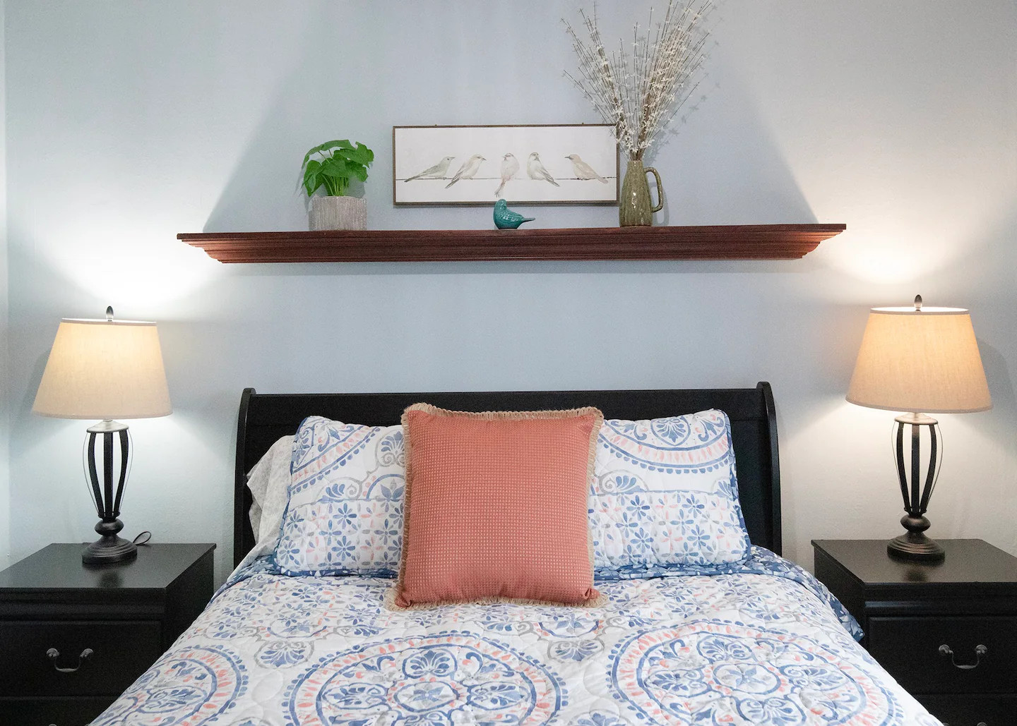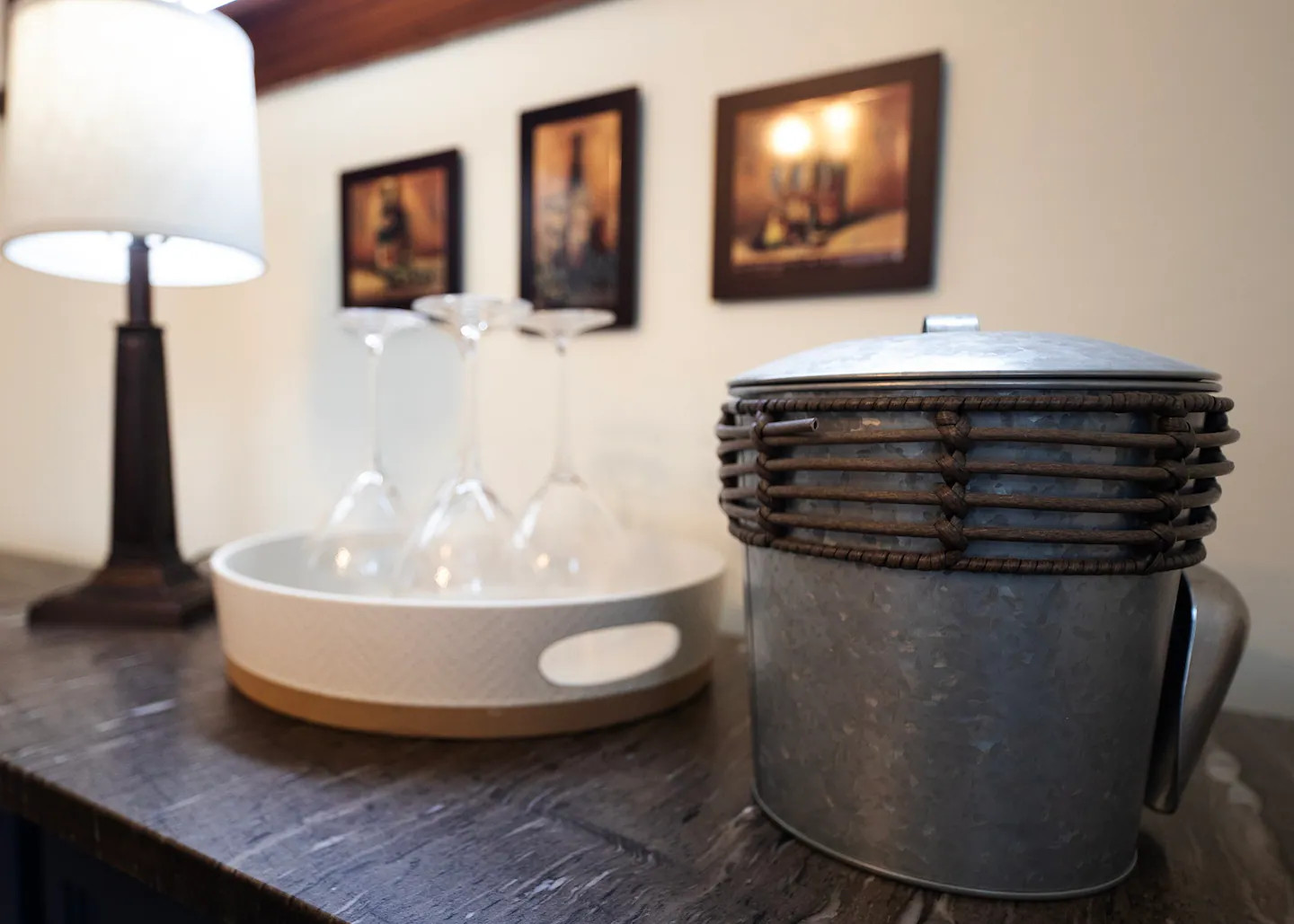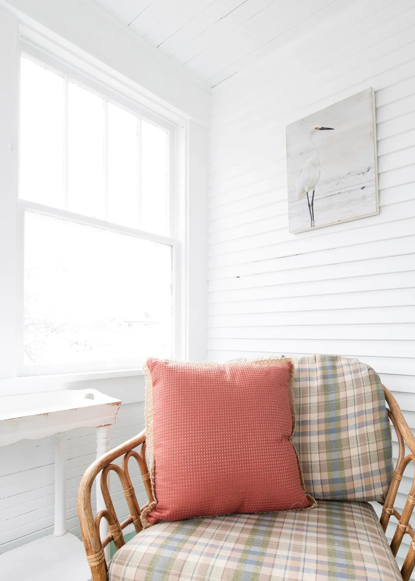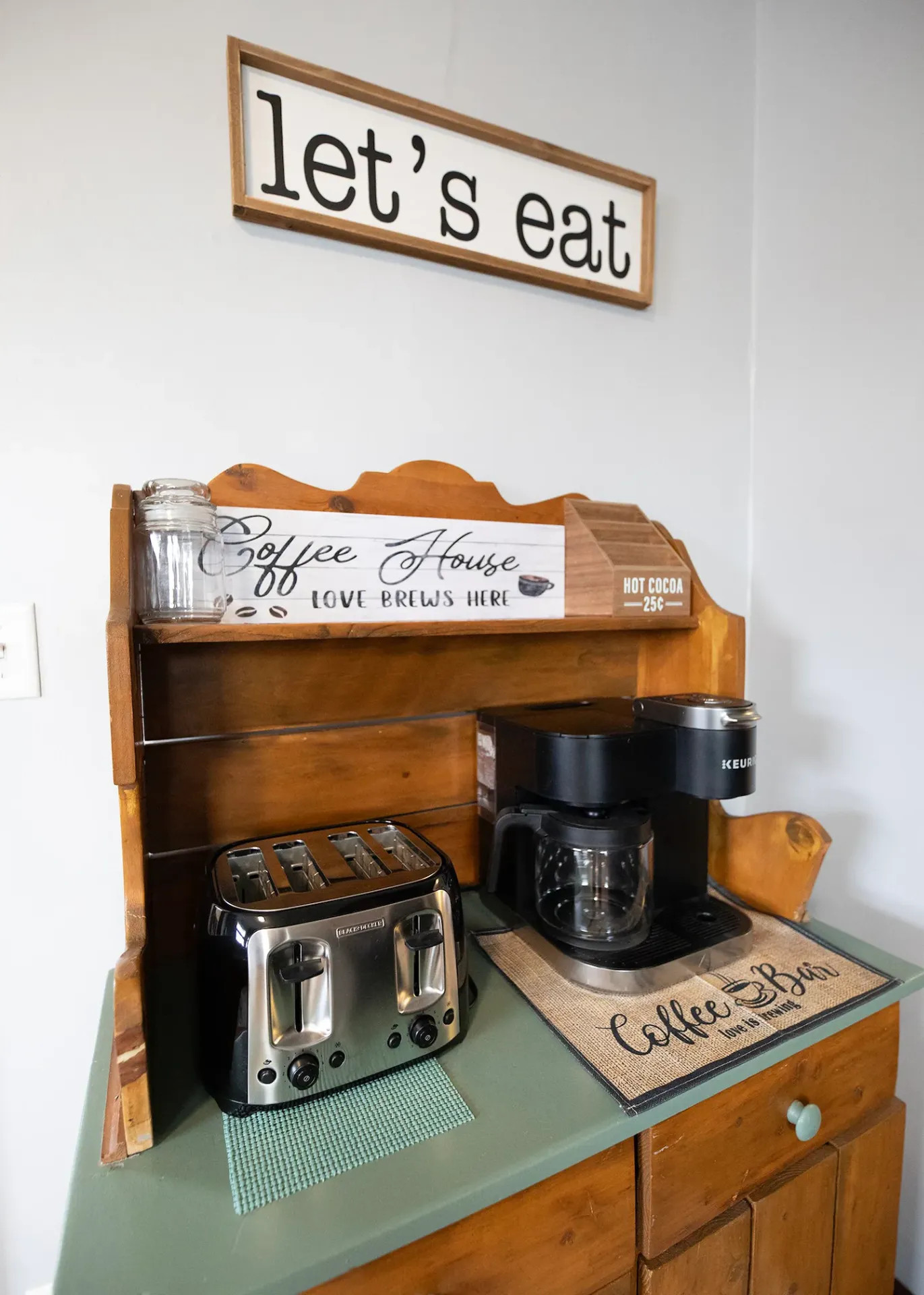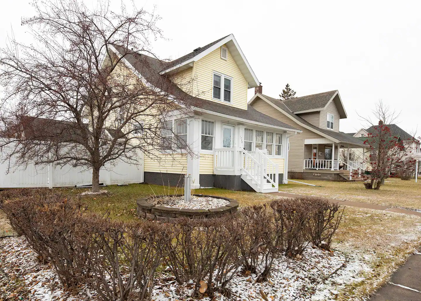 The upper level has three bedrooms, with a queen bed in each of the first two rooms and bunk beds (singles over a queen bed) in the third bedroom. The full-size bathroom comes with a classic clawfoot tub!