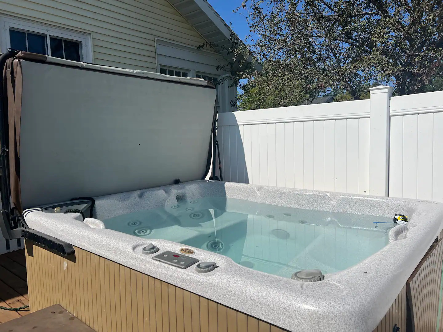 There is a hot tub available in the lodge year-round. It is cleaned and maintained by a professional company.