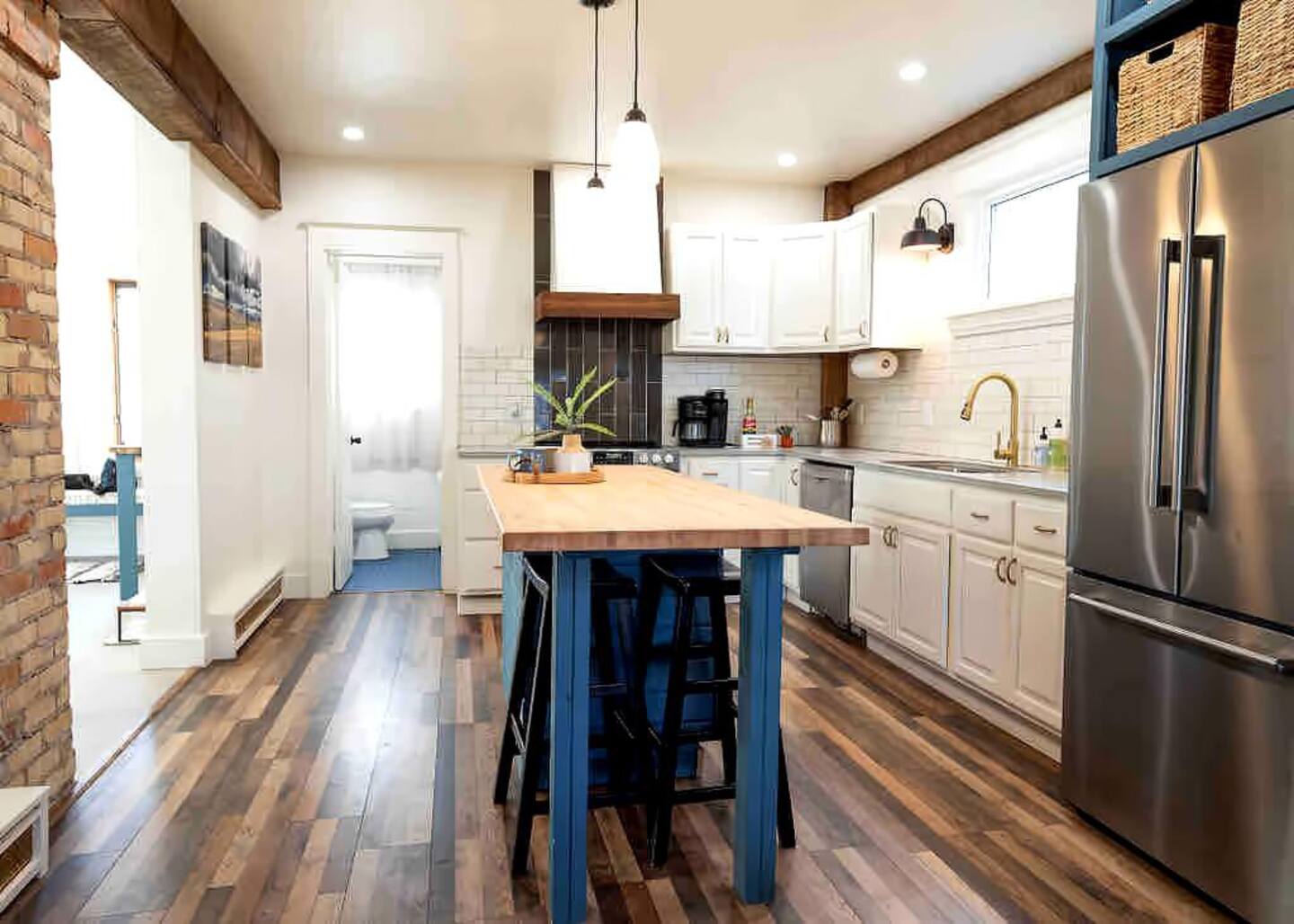 The main floor has a largely open floor plan, perfect for visiting with family or friends! Upstairs you'll find three bedrooms and a full bath, with two queens and a full bed.